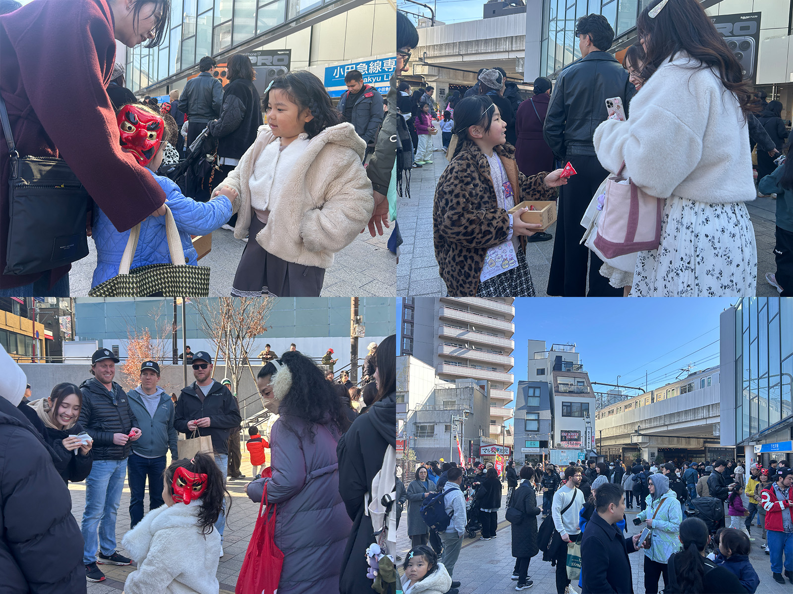 下北沢駅前にて「福は内~」と大きな声で、福を振りまくと共に、街を歩くみなさんに「福豆」をプレゼントしました